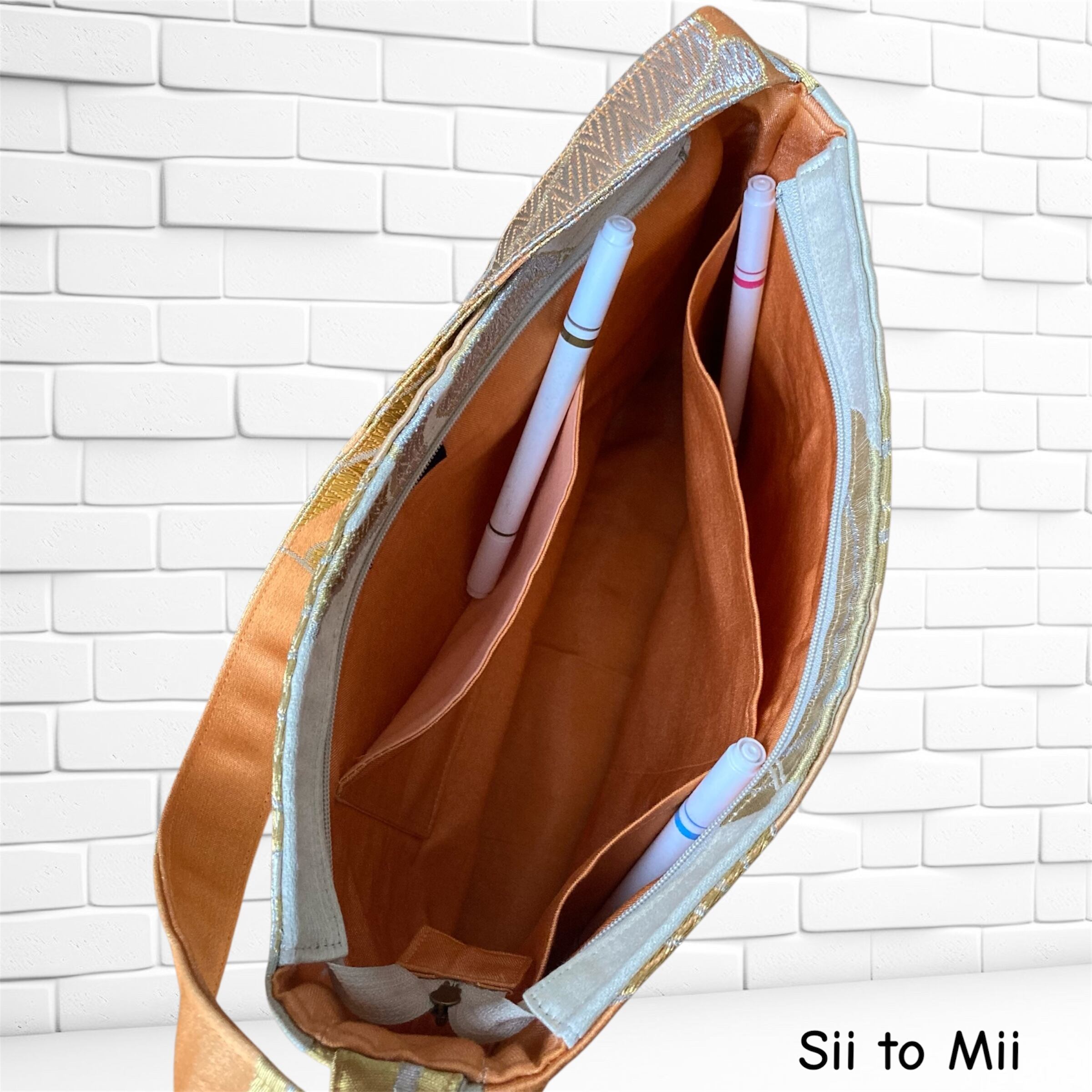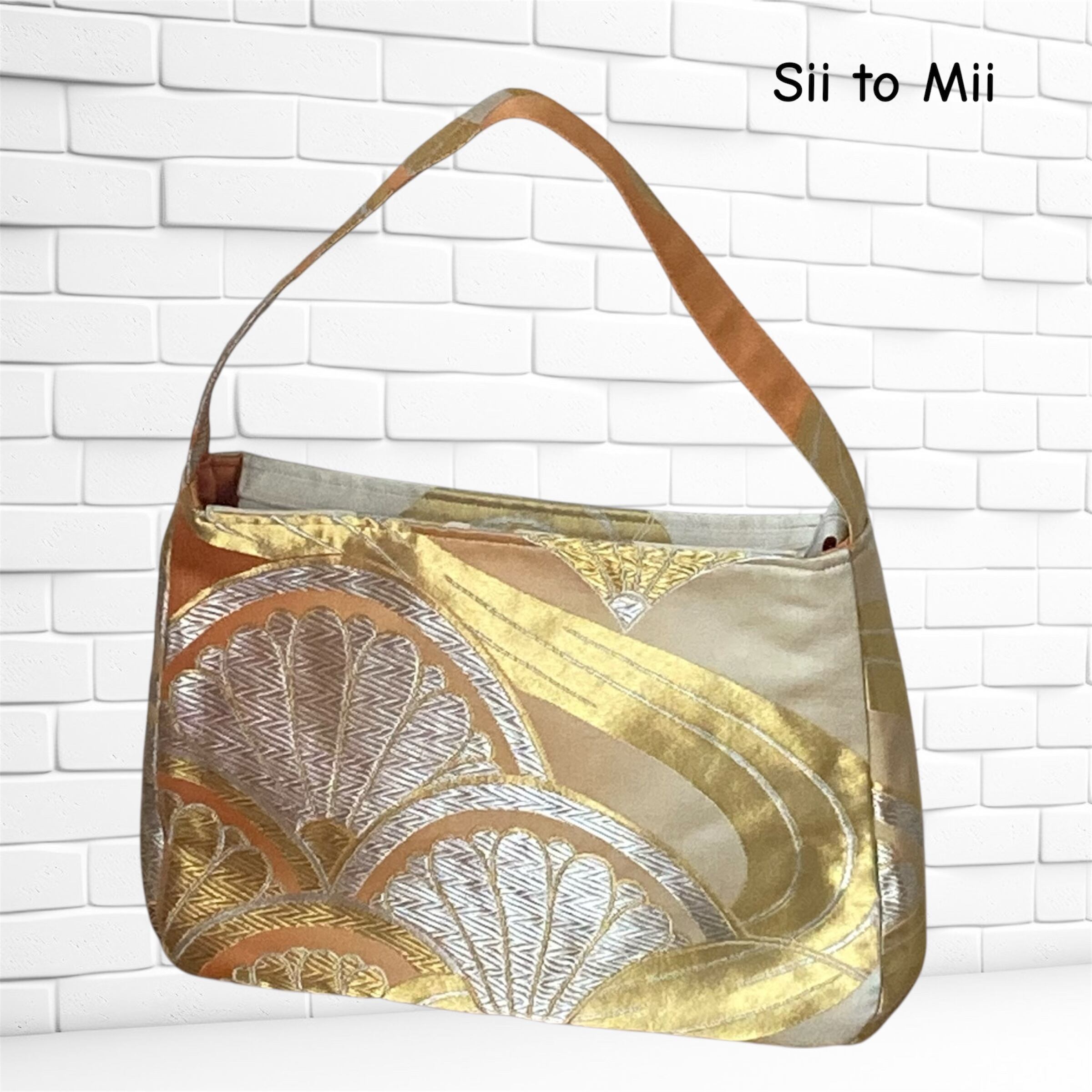 帯ハンドバッグ(オレンジ花柄・1点もの)